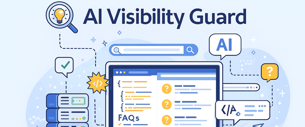 AI Visibility Guard を用いて、WordPressサイトを生成AI検索に最適化します。構造化データマークアップやFAQ、自動要約(TL;DR)、生成AIクローラー向けMarkdownコンテンツを自動生成し、AIに正しく理解・引用されやすい状態をつくります。